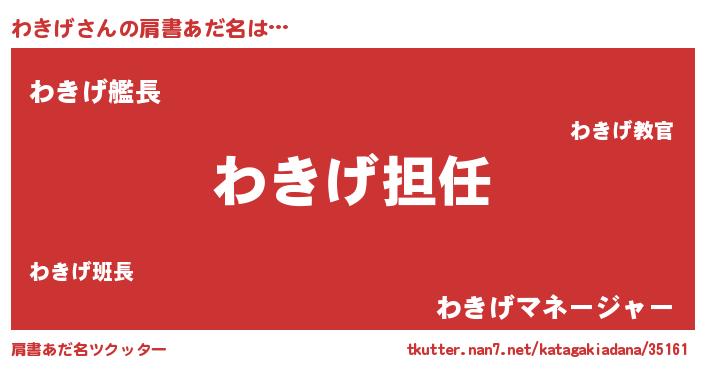 | ヘコむあだ名 | 『わきげ(苦笑)』『わき太郎』 |
