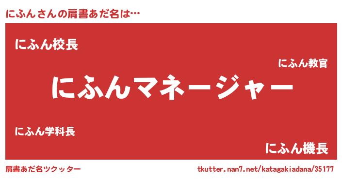 | 意味不明あだ名 | 『永久保存にふん』『にふんフォーエバー』 |