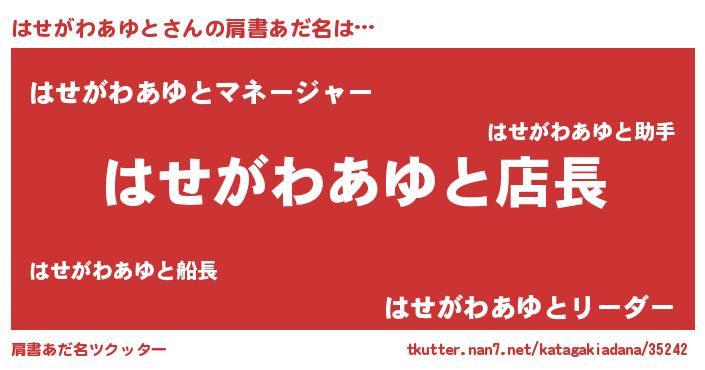 | 恥ずかしいあだ名 | 『プリティーはせがわあゆと』『はせちん』 |