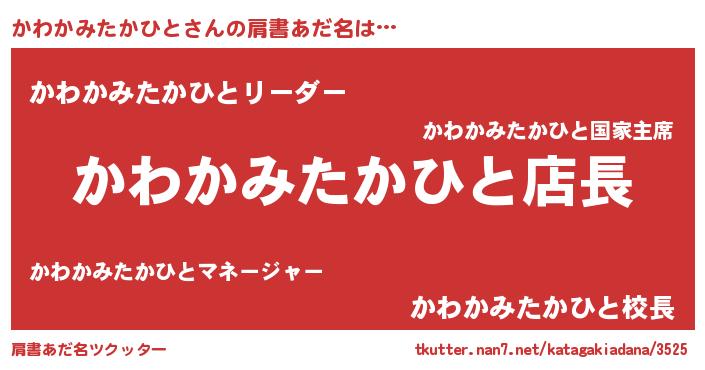 | ヒーロー風カッコイイあだ名 | 『スーパーカワカミタカヒト』 |