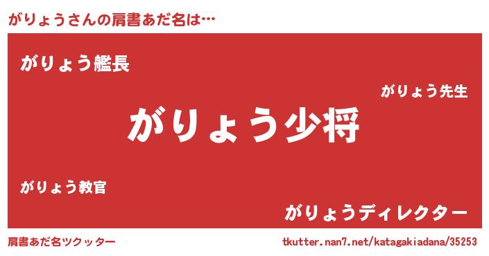 | 男性向けラノベタイトル風あだ名 | 『転生したらがりょうだった件』 |