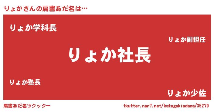 | ヘコむあだ名 | 『りょにー』『りょか(苦笑)』 |