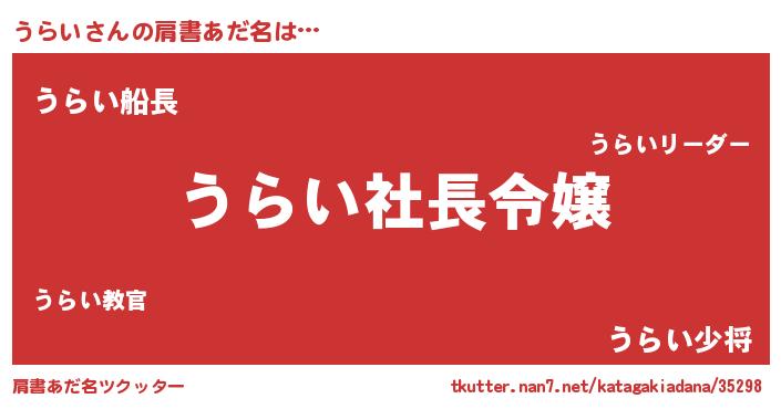 | ヘコむあだ名 | 『うらもー』『うらお』『つくし』 |