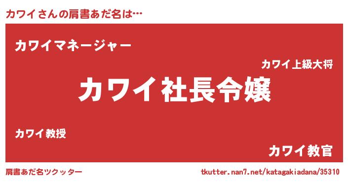 | 男性向けラノベタイトル風あだ名 | 『カワイの憂鬱』『魔弾の王とカワイ』 |