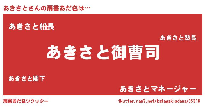 | 男性向けラノベタイトル風あだ名 | 『アキサトアートオンライン』 |