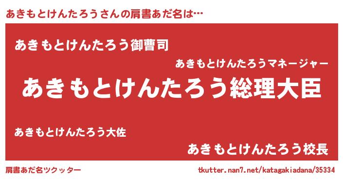 | 男性向けラノベタイトル風あだ名 | 『やはりあきもとけんたろうの青春ラブコメはまちがっている 』 |