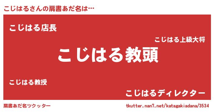 | 男性向けラノベタイトル風あだ名 | 『誰もが恐れるあのこじはるが、ぼくの専属メイドになるようです。』 |