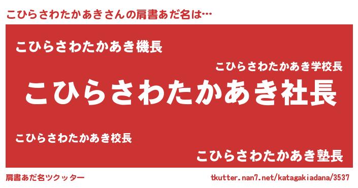 | 男性向けラノベタイトル風あだ名 | 『コヒラサワタカアキアートオンライン』 |