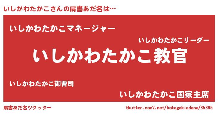 | 男性向けラノベタイトル風あだ名 | 『魔弾の王といしかわたかこ』 |