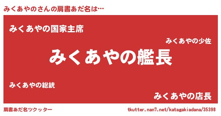 | 男性向けラノベタイトル風あだ名 | 『うちのみくあやのが世界を掌握している!』 |