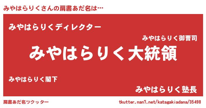 | ファンタジー風あだ名 | 『エターナルミヤハラリクー』 |