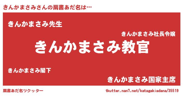 | 男性向けラノベタイトル風あだ名 | 『魔弾の王ときんかまさみ』 |