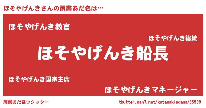 | 意味不明あだ名 | 『住所不定無職ほそやげんき(11歳)』 |