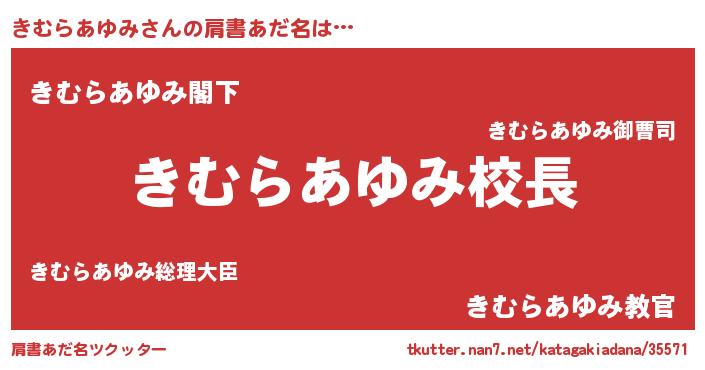 | 伝説のあだ名 | 『古文書に記された暗殺者きむらあゆみ』 |