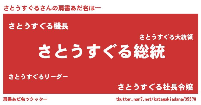 | ヒーロー風カッコイイあだ名 | 『究極戦士サトウスグル』『天弓騎士サト』 |