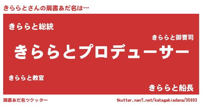 | 意味不明あだ名 | 『自称きららと』『ペロリンきららと』 |