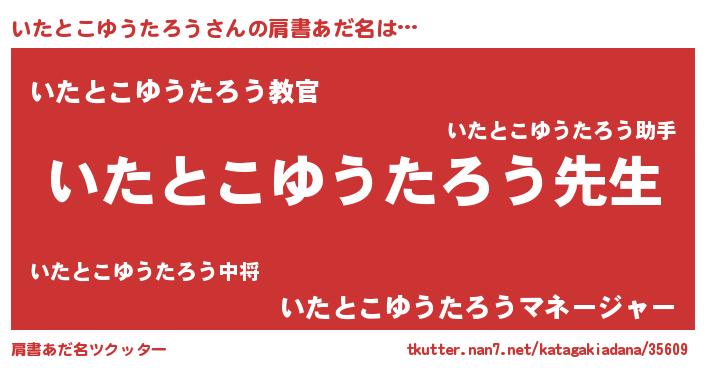 | ヘコむあだ名 | 『いたとこゆうたろう(笑)』『いたっふぃ~』 |