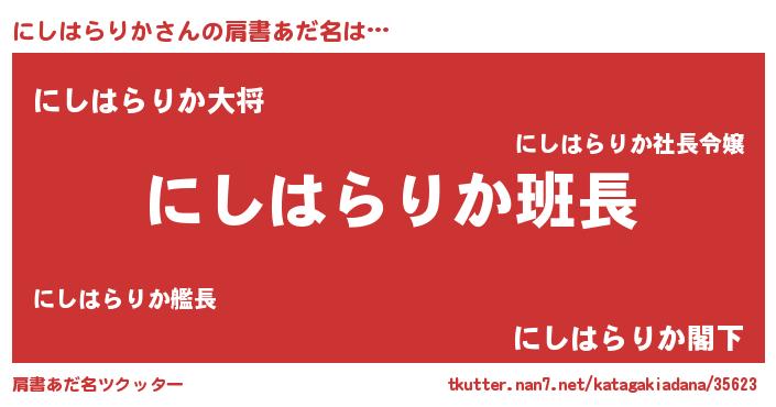 | 女子向けラノベタイトル風あだ名 | 『にしはらりかは平凡を望む』 |