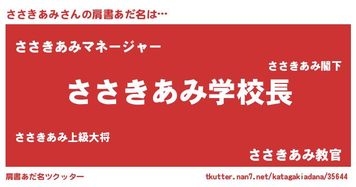 | 女子向けラノベタイトル風あだ名 | 『ささきあみ恋絵巻』 |