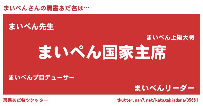 | 意味不明あだ名 | 『まいぺんフォーエバー』『自称まいぺん』 |