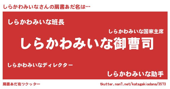 | 胡散臭い通販商品みたいなあだ名 | 『モテモテ間違いなし霊験あらたかなお札…その名も「しらかわみいな」』 |