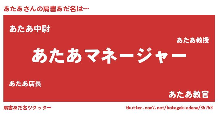 | 男性向けラノベタイトル風あだ名 | 『はたらくあたあさま!』『あたあの憂鬱』 |
