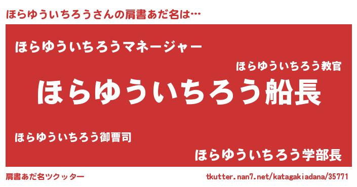 | 男性向けラノベタイトル風あだ名 | 『緋弾のホラユウイチロウ』 |