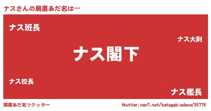 | 意味不明あだ名 | 『自称ナス』『とにかく怪しいナス』 |