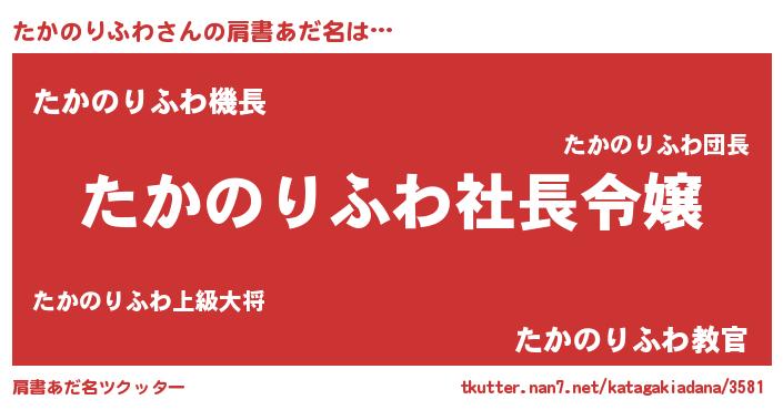 | 胡散臭い通販商品みたいなあだ名 | 『億万長者になれる霊験あらたかなお札…その名も「たかのりふわ」』 |
