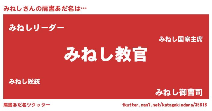 | 意味不明あだ名 | 『住所不定無職みねし(53歳)』『自称みねし』 |