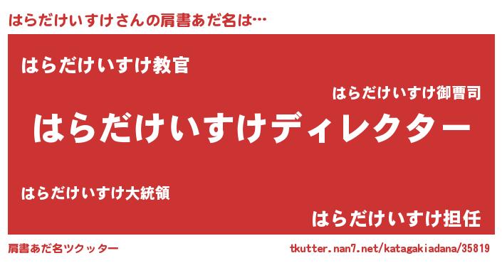 | 男性向けラノベタイトル風あだ名 | 『はらだけいすけに滅ぼされるだけの簡単なお仕事です』 |