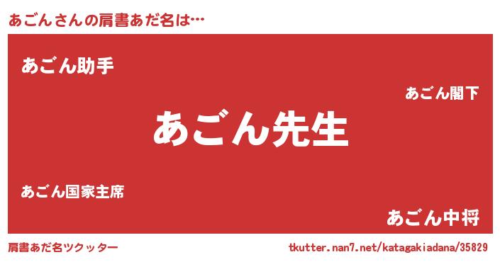 | ヒーロー風カッコイイあだ名 | 『ネオアゴン』『愛の使者あごん』 |