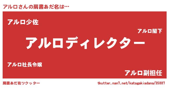 | 意味不明あだ名 | 『もやし科アルロ属』『永久保存アルロ』 |