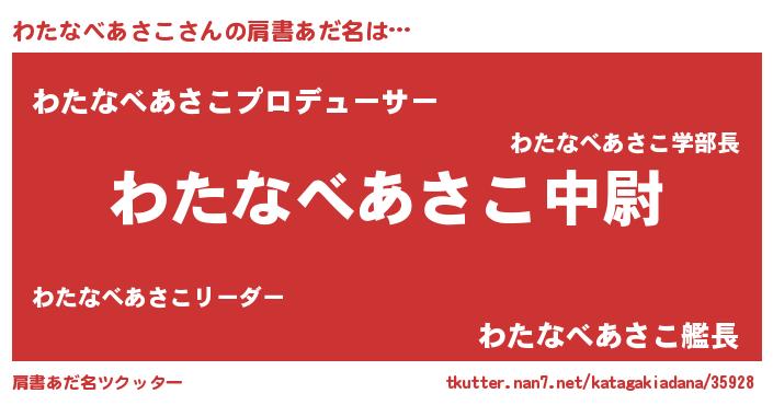 | ヘコむあだ名 | 『わたっ子』『わたなべあさこ(震え声)』 |