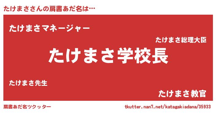 | ヒーロー風カッコイイあだ名 | 『慈愛の使者たけまさ』『仮面タケダー』 |