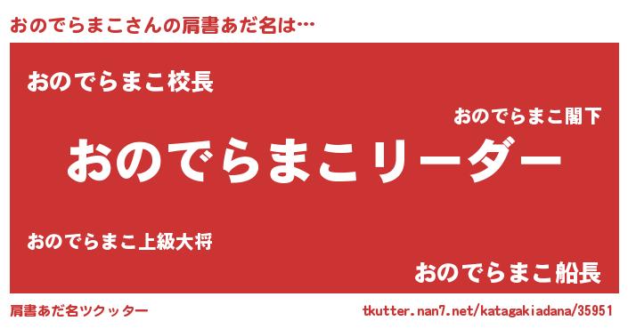 | 男性向けラノベタイトル風あだ名 | 『おのでらまこの嫁は女の子じゃないと思った?』 |