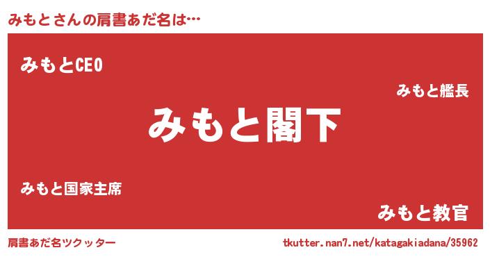 | 男性向けラノベタイトル風あだ名 | 『Re:みもとから始める異世界生活』 |