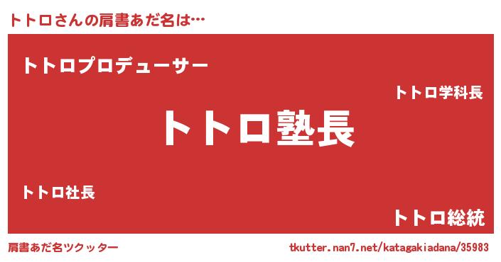 | 意味不明あだ名 | 『とにかく怪しいトトロ』『自称トトロ』 |