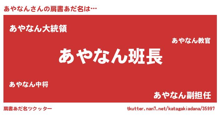 | 意味不明あだ名 | 『とにかく怪しいあやなん』 |