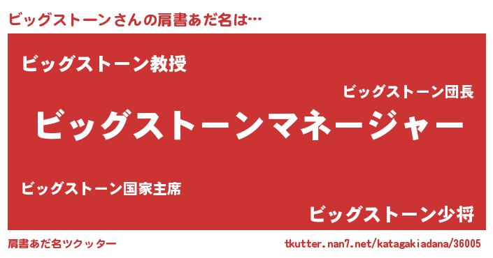 | 男性向けラノベタイトル風あだ名 | 『ビッグストーンに滅ぼされるだけの簡単なお仕事です』 |
