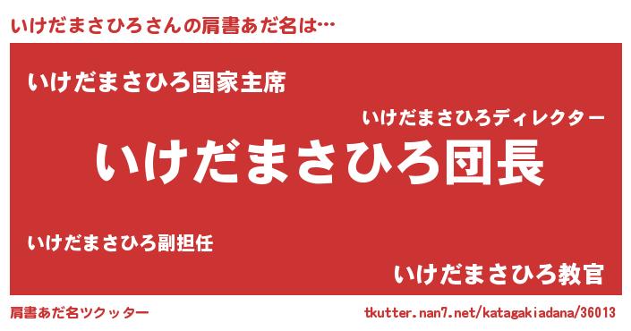 | ポケモン風あだ名 | 『ヒイケダマサヒロ』『イケダダネ』 |