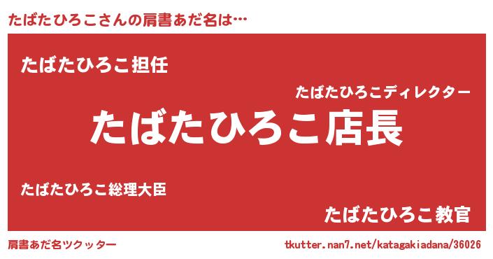 | ヘコむあだ名 | 『たばにゅー』『たばたひろこ(爆)』 |