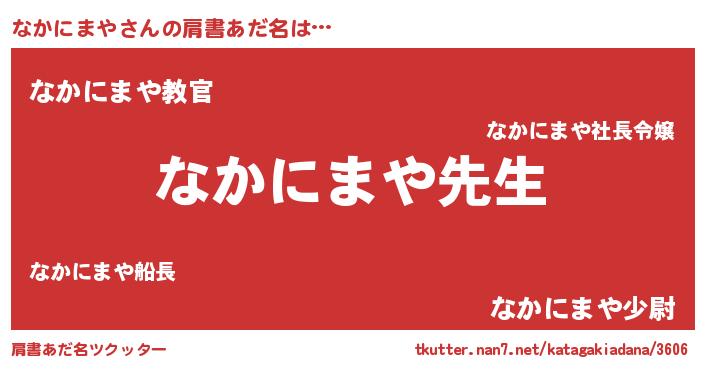 | 男性向けラノベタイトル風あだ名 | 『なかにまやという概念が存在しない退屈な世界 』 |