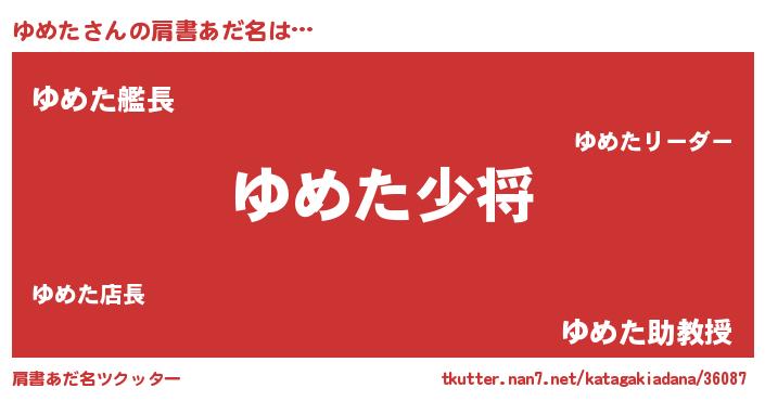 | 男性向けラノベタイトル風あだ名 | 『ゆめた~年齢イコール彼女いない歴の魔法使い~』 |