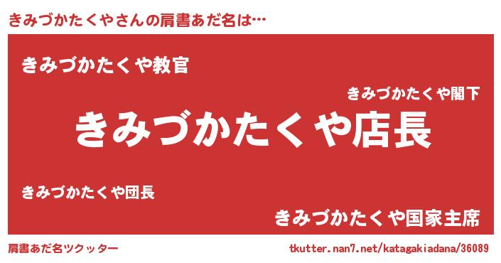 | 男性向けラノベタイトル風あだ名 | 『きみづかたくやの憂鬱』 |