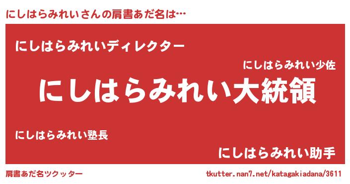 | 欧米人風あだ名 | 『にしはらみれいクリステル』 |