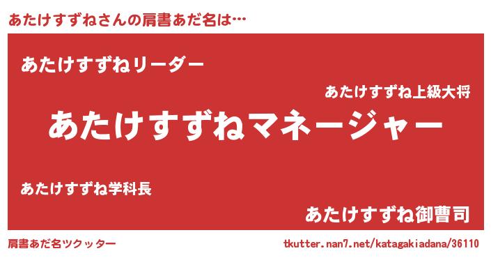 | 胡散臭い通販商品みたいなあだ名 | 『信頼と実績のサプリメント…その名も「あたけすずね」』 |