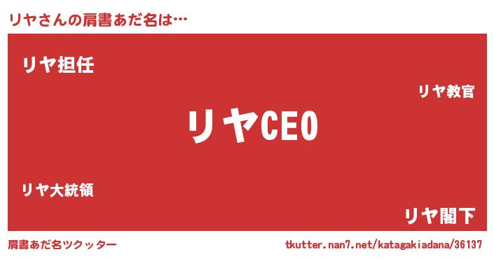 | ファンタジー風あだ名 | 『リヤフェル』『リヤディッシュ』 |