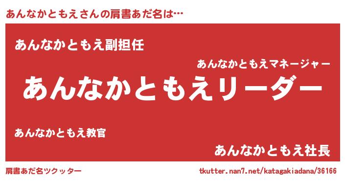 | 女子向けラノベタイトル風あだ名 | 『あんなかともえは平凡を望む』 |