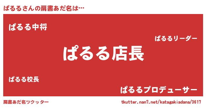 | 意味不明あだ名 | 『ペロリンぱるる』『ニラ科ぱるる属』 |